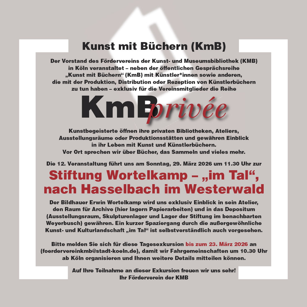 Die 12. Veranstaltung im Rahmen der Reihe KMB privée führt uns am Sonntag, 29. März 2026 um 10.30 Uhr zur Stiftung Wortelkamp – „im Tal“, nach Hasselbach im Westerwald.