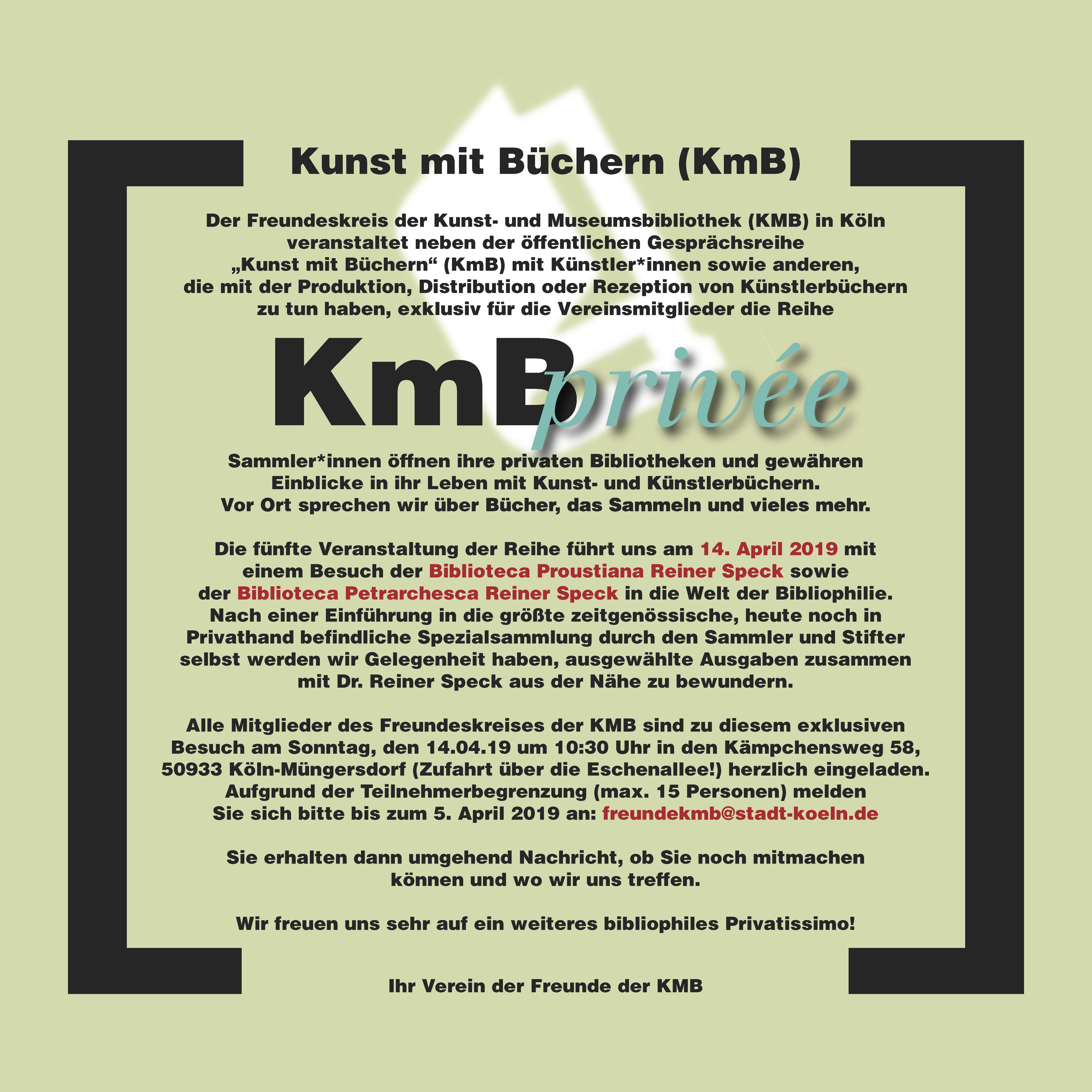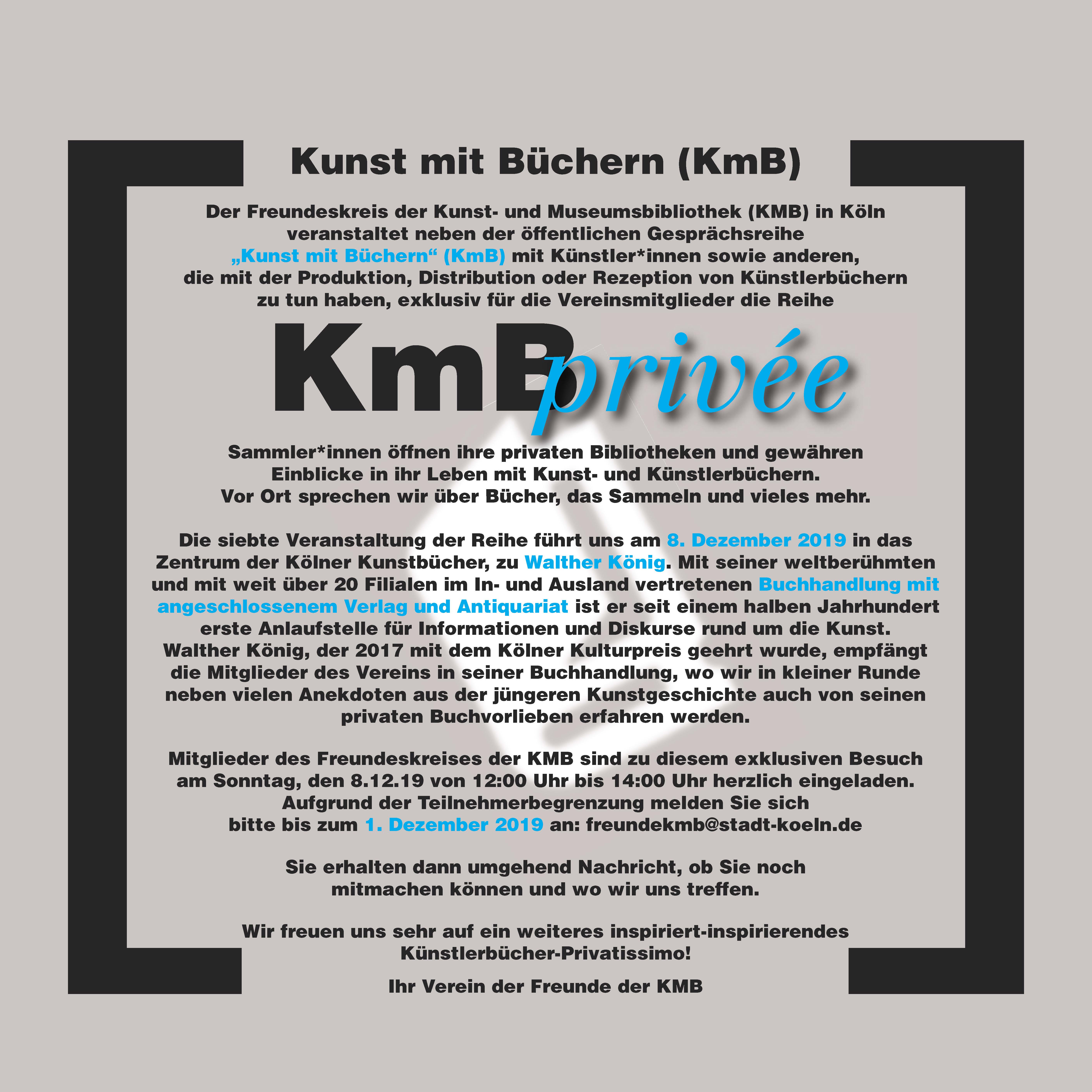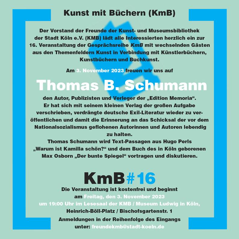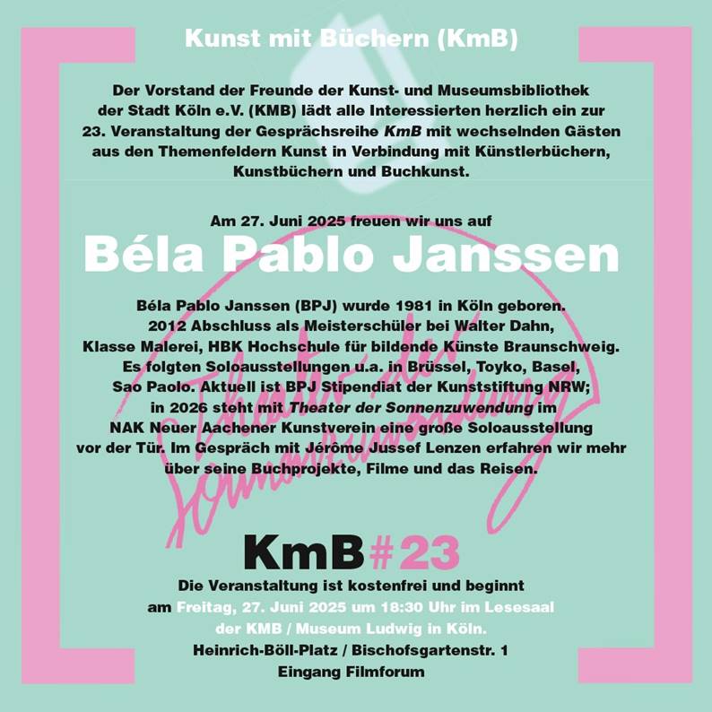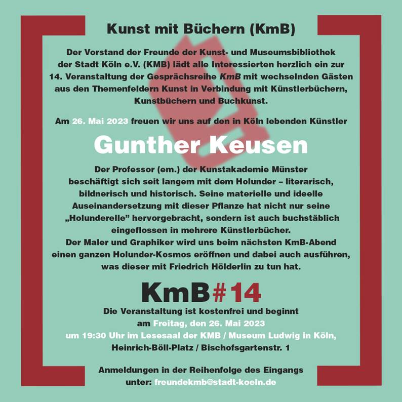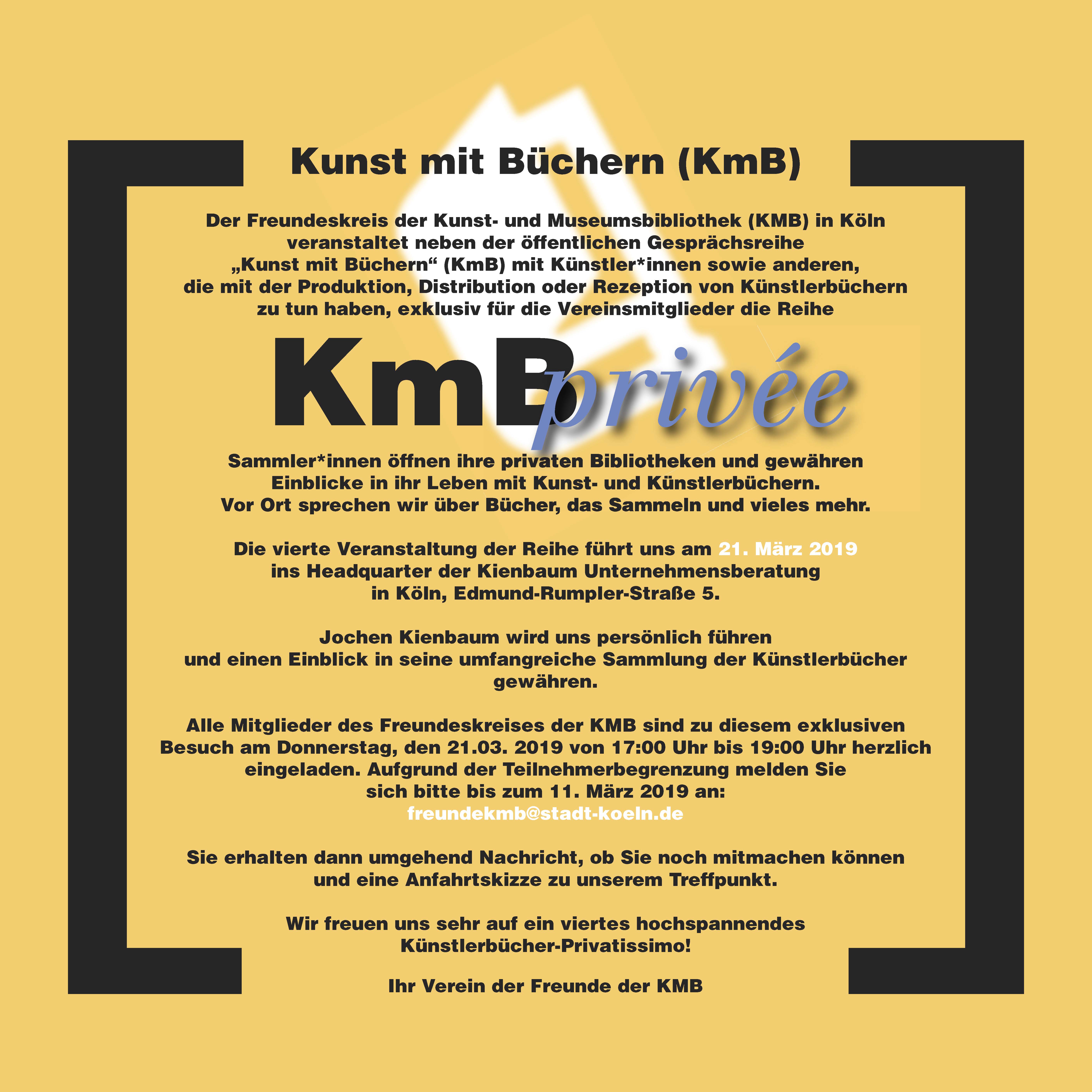 Die Veranstaltung findet statt in der Reihe "Kunst mit Büchern". Sie ist kostenfrei und beginnt um 19 Uhr im ZADIK, Im Mediapark 7, 50670 Köln. Die Mitglieder der beiden Fördervereine sind exklusiv zum Sektempfang ab 18.30 Uhr eingeladen.